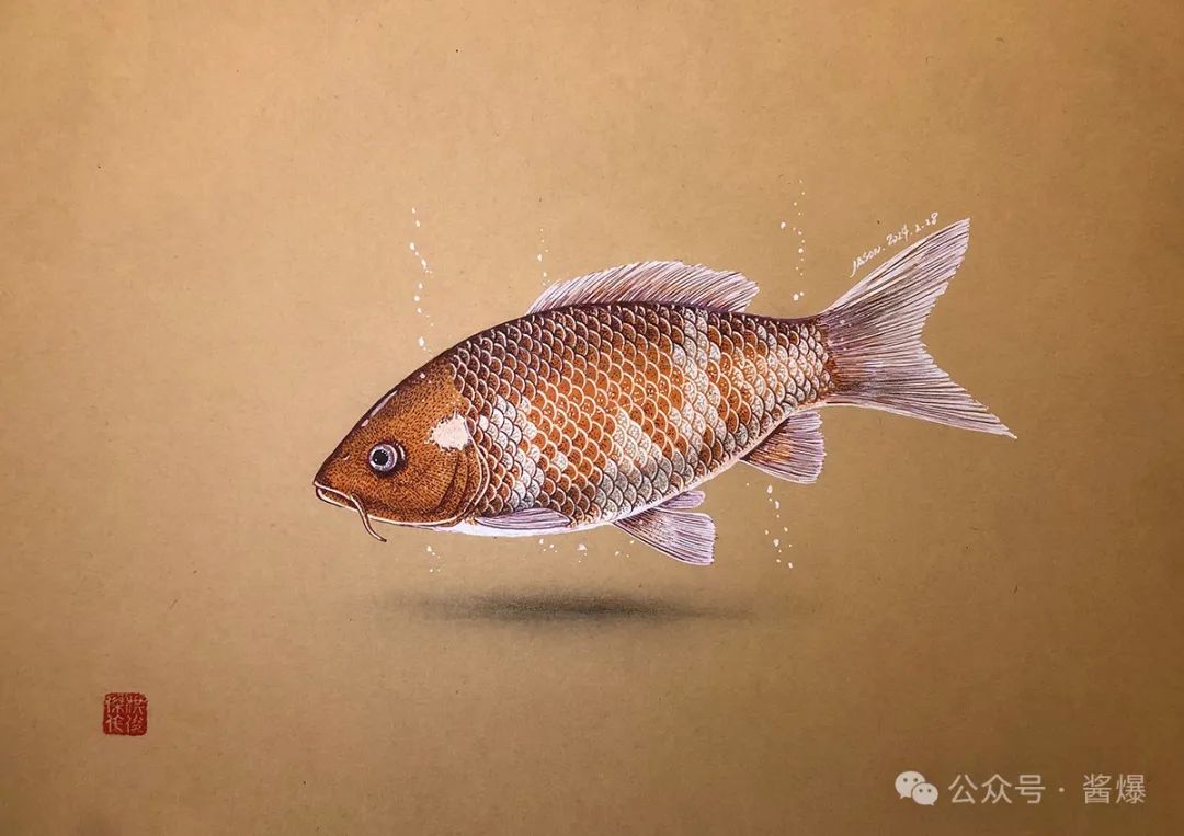 洪俊杰从小就喜欢画鱼。当他成年后离家努力工作时,他总是带着画笔和画纸。当他想家时,他坐在湖边,拿出纸笔,画出他记忆中的鱼。