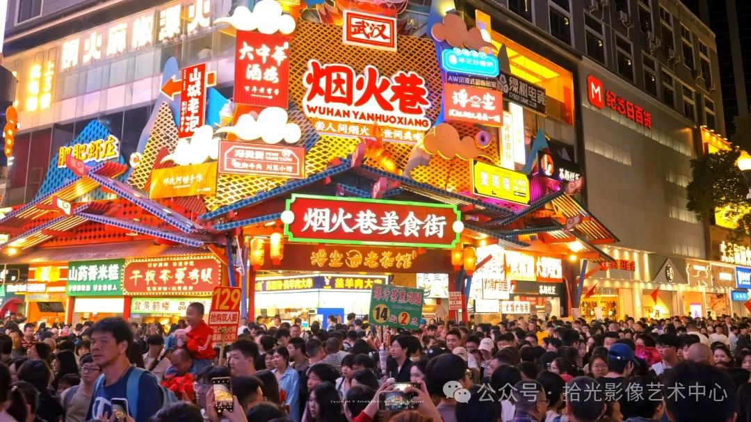 拍摄于湖北武汉,国庆期间武汉烟火巷人山人海,庆祝国庆节。