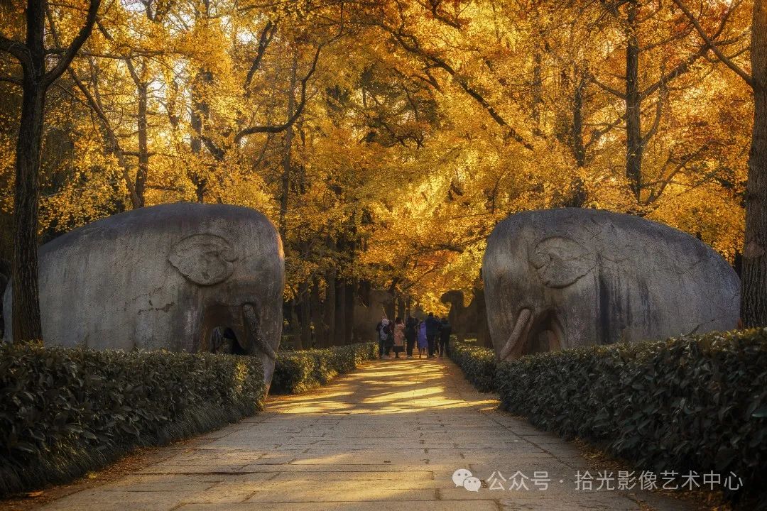 拍摄于南京明孝陵,两座威武霸气的石像后面是金叶。