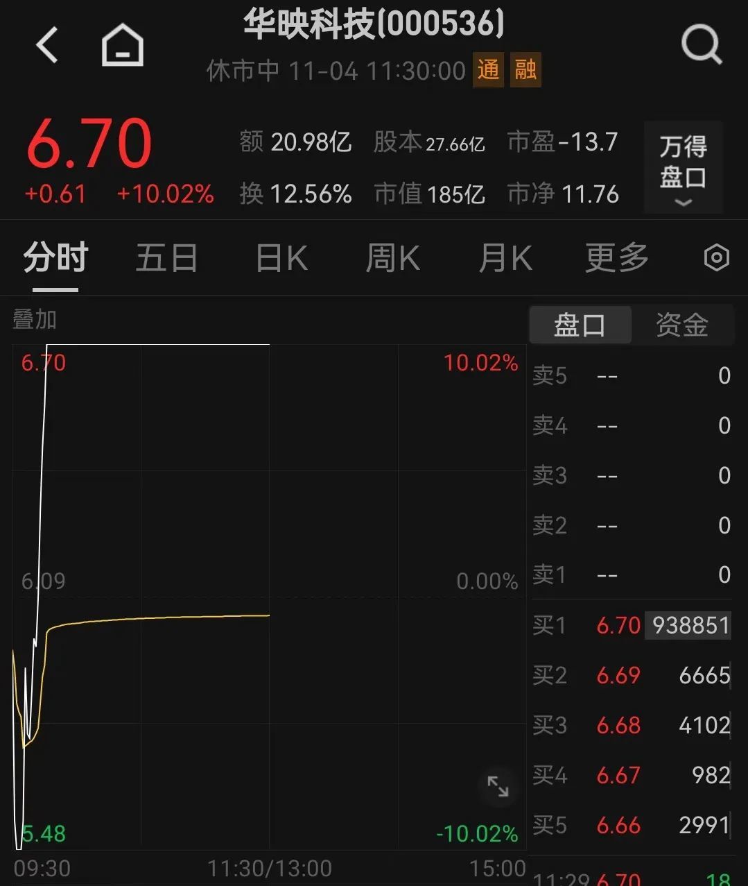 其中,华英科技一度在开盘时下跌。但随后直线拉升至日线跌停,走出连续7板,上演“地板”市场,成交额接近20亿元。