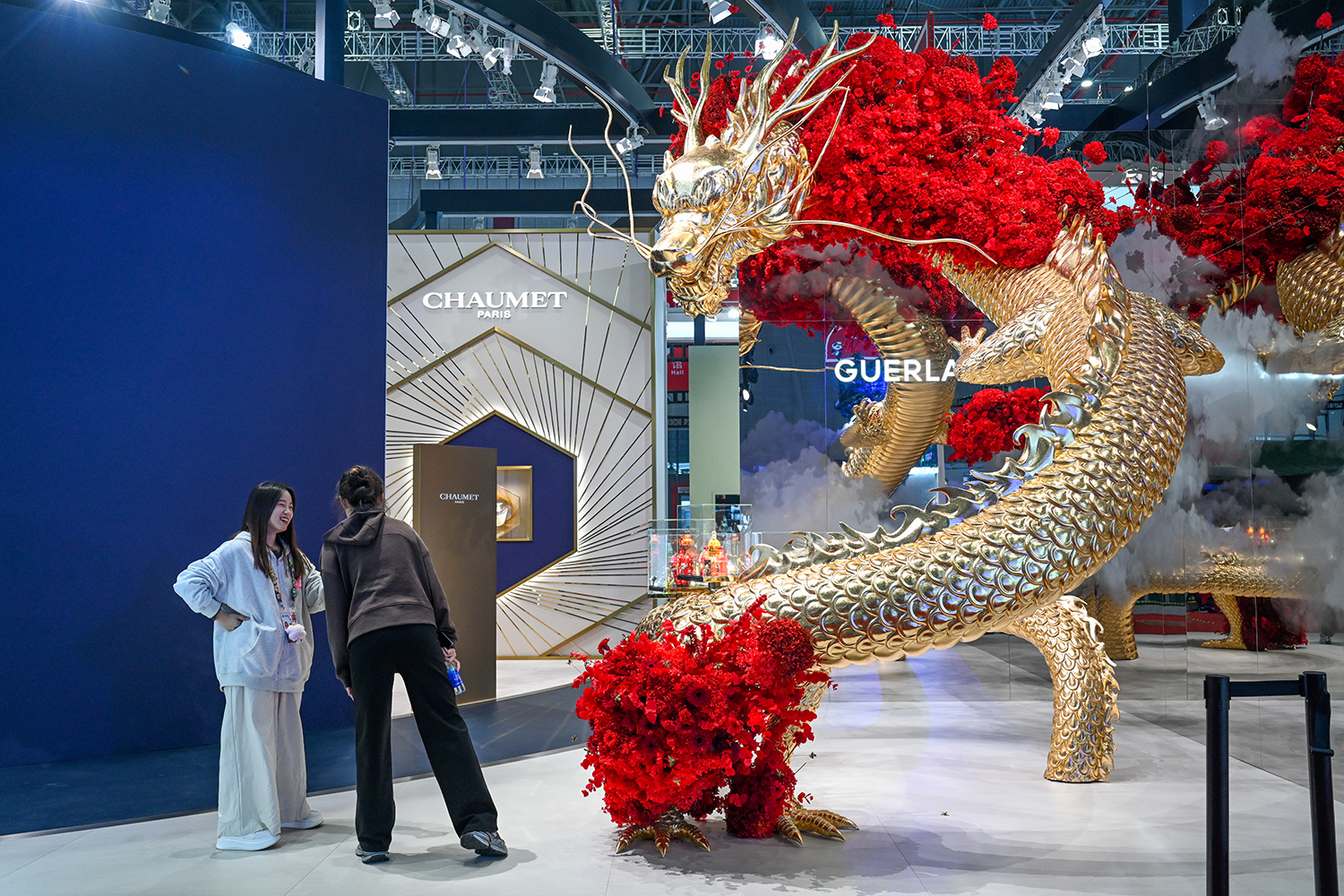 国家会展中心(上海)、LVMH展台的巨型龙雕像于2024年11月3日举行。本报记者 朱伟辉 图