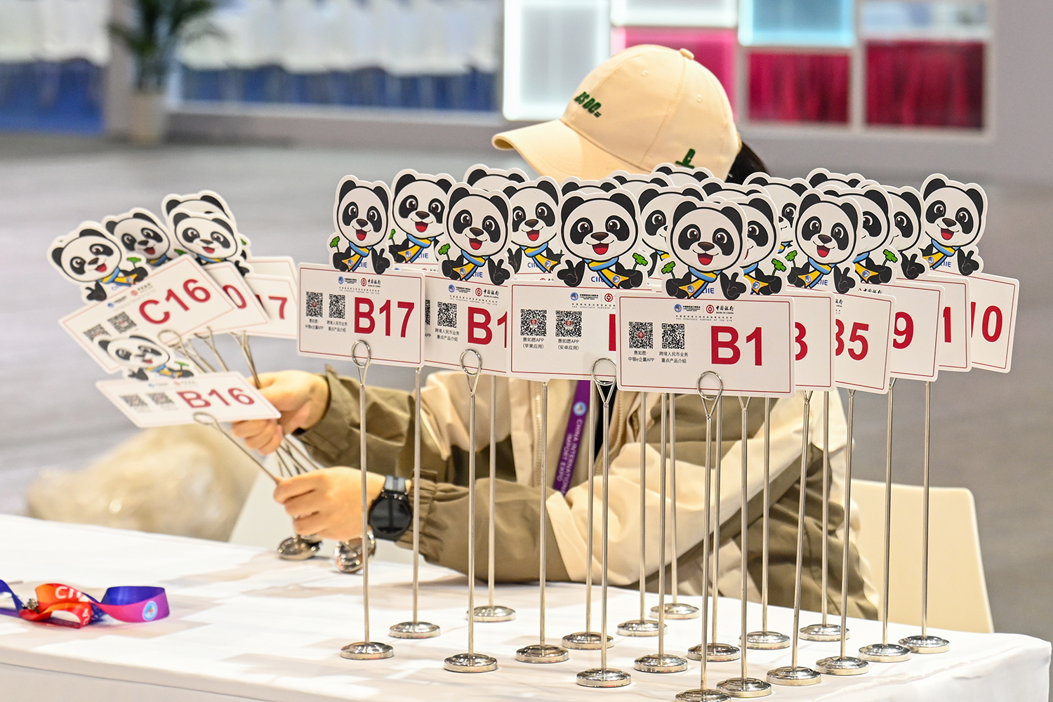 国家会展中心(上海)于2024年11月3日,工作人员正在整理桌牌。本报记者 朱伟辉 图
