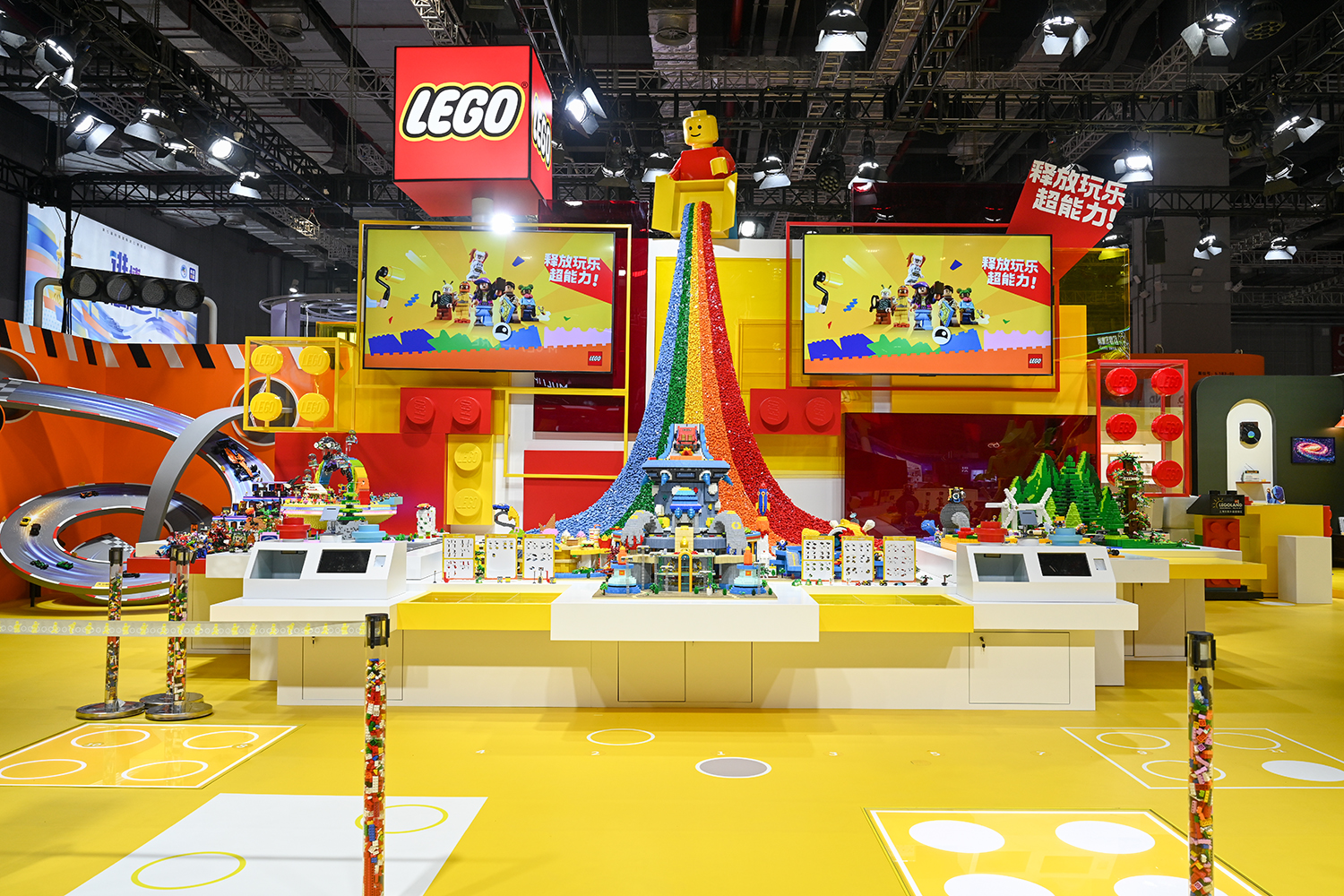 2024年11月3日,国家会展中心(上海)连续七年在中国国际进口博览会上展出乐高集团展位。“释放玩超能力”主题设备高度为4.75米,由30多万颗乐高积木颗粒组成。该装置汇集了数万名儿童的玩耍创意,这也是乐高集团参加中国国际进口博览会以来参与同类创作人数最多的主题设备。本报记者 朱伟辉 图