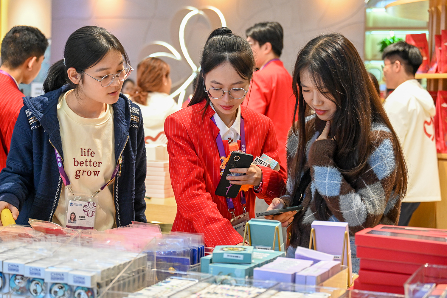 国家会展中心(上海)于2024年11月3日,参展商在国展文创馆购买了中国国际进口博览会衍生产品。本报记者 朱伟辉 图