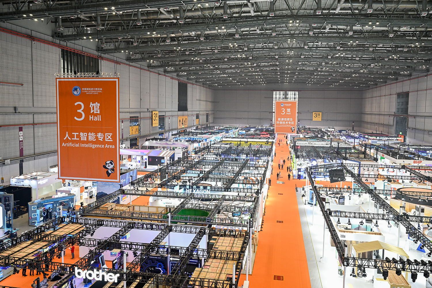 2024年11月3日,国家会展中心(上海)、3号馆人工智能区和能源低碳环保科技区布局完成。本报记者 朱伟辉 图