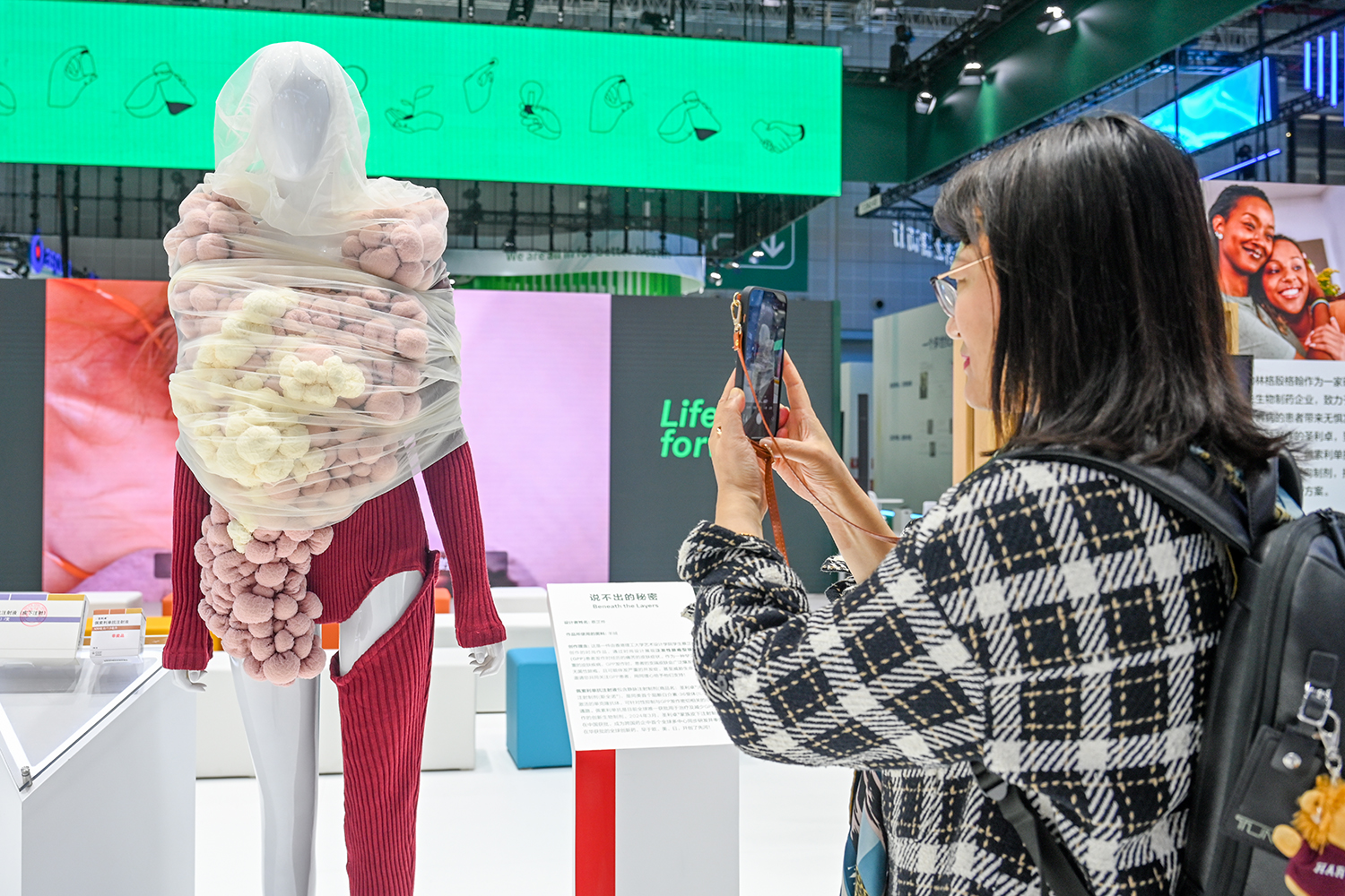 2024年11月3日,国家会展中心(上海),参展商正在介绍中国国际进口博览会首秀的内镜下袖状胃成形手术系统。本报记者 朱伟辉 图