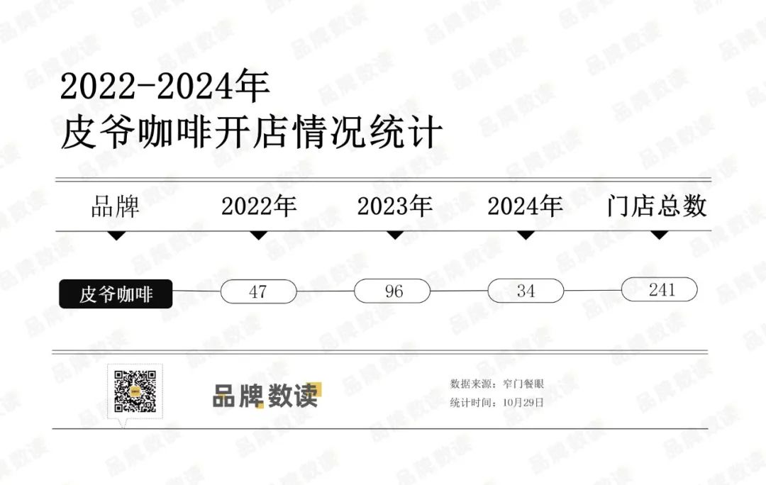 具体来说,疫情过后的2023年是皮爷咖啡店最强的一年,新增门店数量已达近百家。然而,今年,皮爷咖啡店的数量开始明显放缓。目前新开的门店只有34家,甚至不超过2022年的47家。考虑到今年只剩下两个月了,皮爷咖啡今年开店的概率还不如2022年。