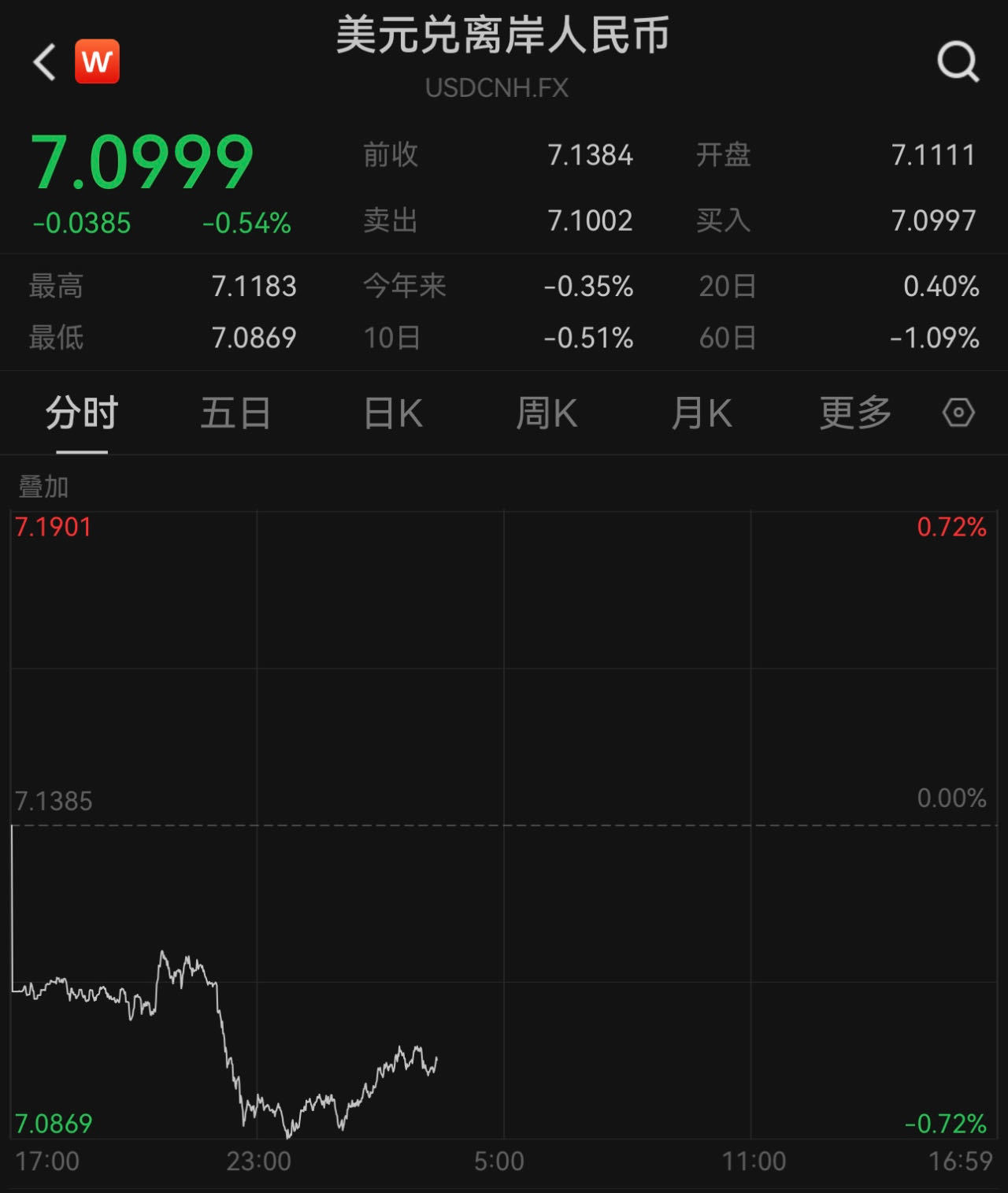 与美元汇率一样,离岸人民币也迎来了大幅上涨。