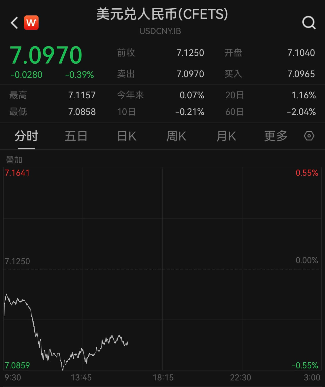 美元走弱,在岸和离岸人民币对美元汇率上升至7.09