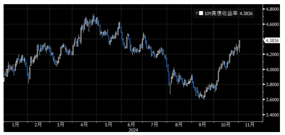 周五,美国公布了10月份的非农数据,12000人的新就业令市场大跌眼镜。然而,在美元和美国国债收益率短暂下降后,所有国债收益率迅速反弹。10年期美国国债收益率飙升至4.38%,当天上涨10bp。