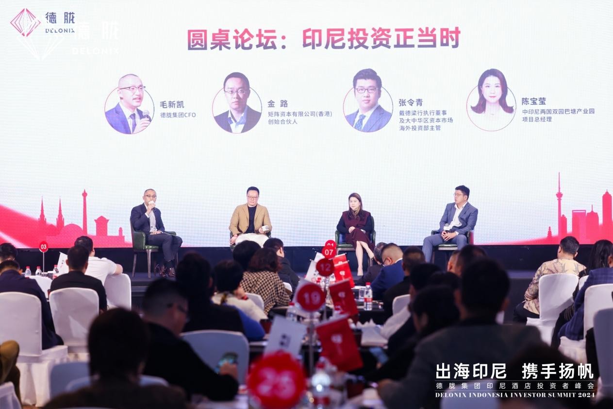 在圆桌论坛上,德胧集团CFO毛新凯与大中华区资本市场海外投资部主管张令青、中印尼双园巴塘产业园项目总经理陈宝莹深入分析了印尼在全球投资视野下的现状和高效投资安全路径,包括大中华区资本市场创始合伙人金路、戴德梁行执行董事、海外投资部主管张令青、中印尼。