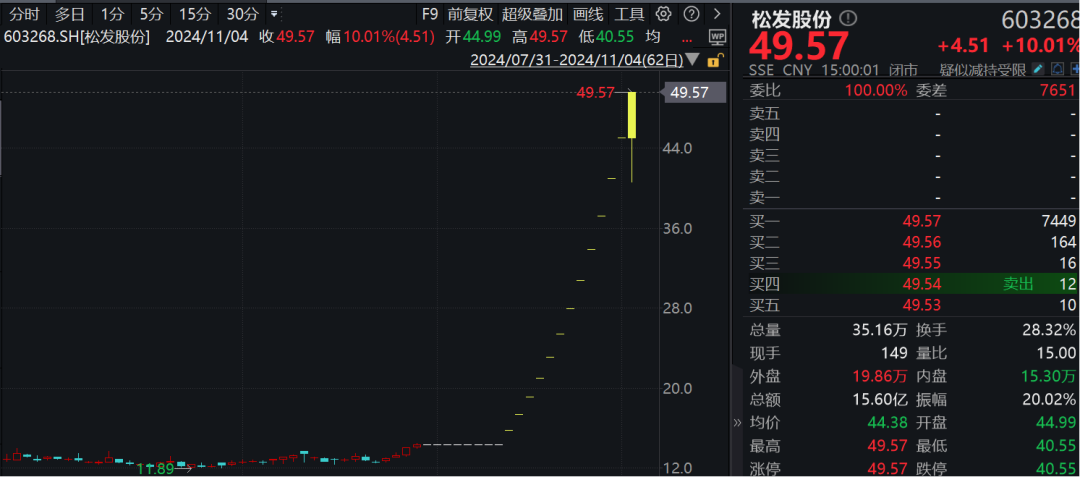松发股份,华映科技,中化岩土,福日电子,盘初瞬间闪崩至跌停,随后又直线拉升至跌停。