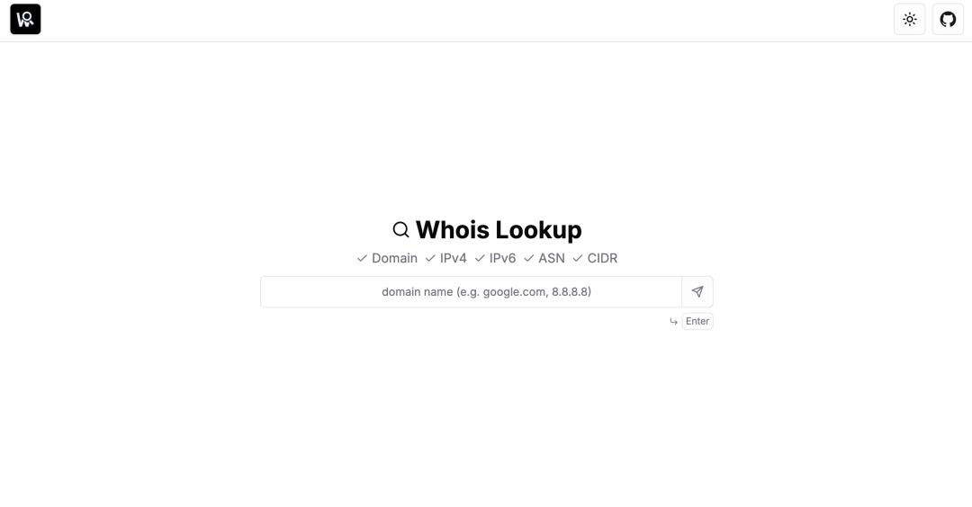 查询工具 Whois,支持查询域名 / IPv4 / IPv6 / ASN / CIDR。