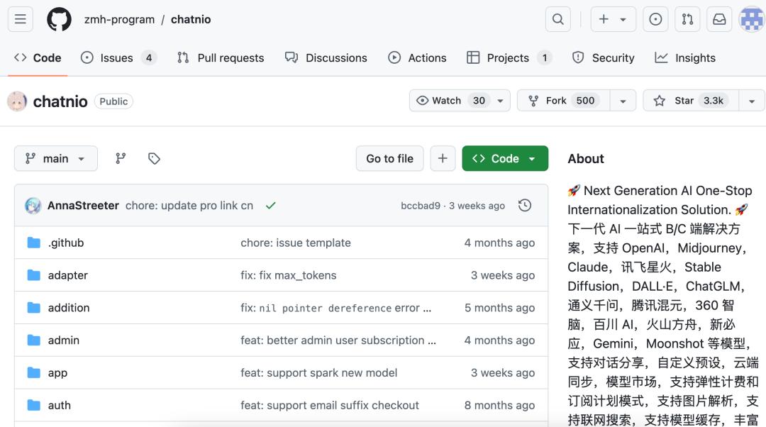 ChatNio 上线后,受到了开发者的欢迎,很快冲上了最受欢迎代码仓库的第一名,至今已获得 3.2k star。