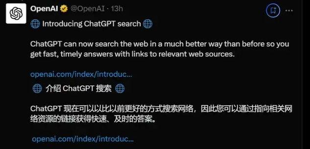 早前就在传,并且小批量灰度测试的ChatGPT Search,今日凌晨终于正式上线,面向付费的ChatGPT Plus和Team用户,以及SearchGPT候补名单用户开放。而在ChatGPT的计划中,他们还将在未来的数周时间里陆续向其他用户开放权限,包括所有的免费用户。