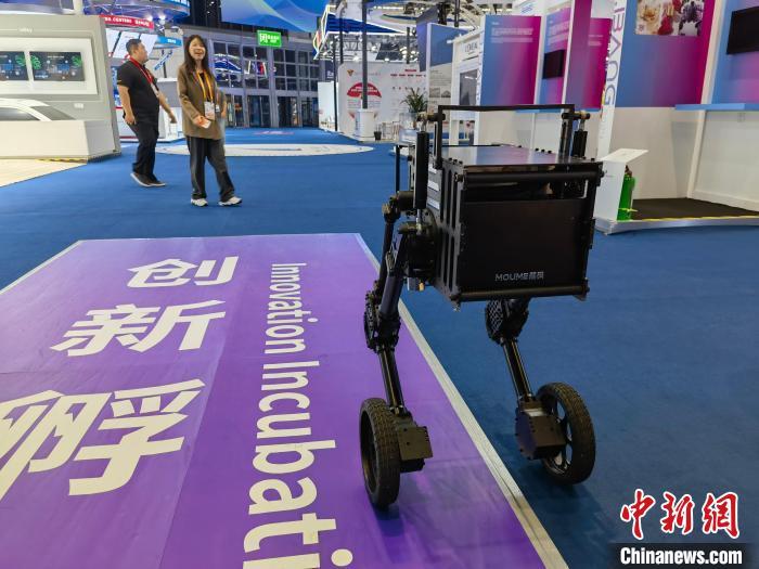 进入进博会创新孵化专区,艨码科技(苏州)有限公司即将全球首发的工业级双轮足机器人“行影”已经开始“热身”。