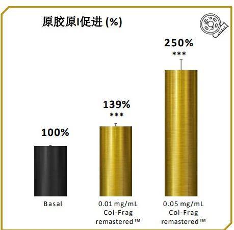 将人类皮肤纤维细胞放入不同浓度 Col-Frag 乳液处理 48 在一个小时内,它能合成胶原蛋白提高。250%