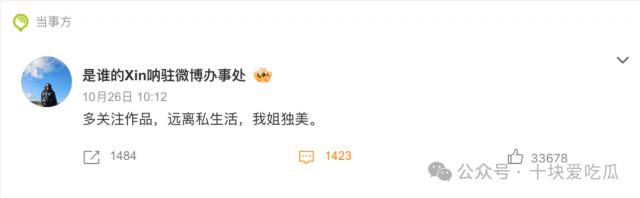10 月 26 日,辛芷蕾助理帐号发文称“多关注作品,远离私生活,我姐独美”,怀疑分手的传闻,评论区的粉丝们非常激动,纷纷庆祝终于分手。