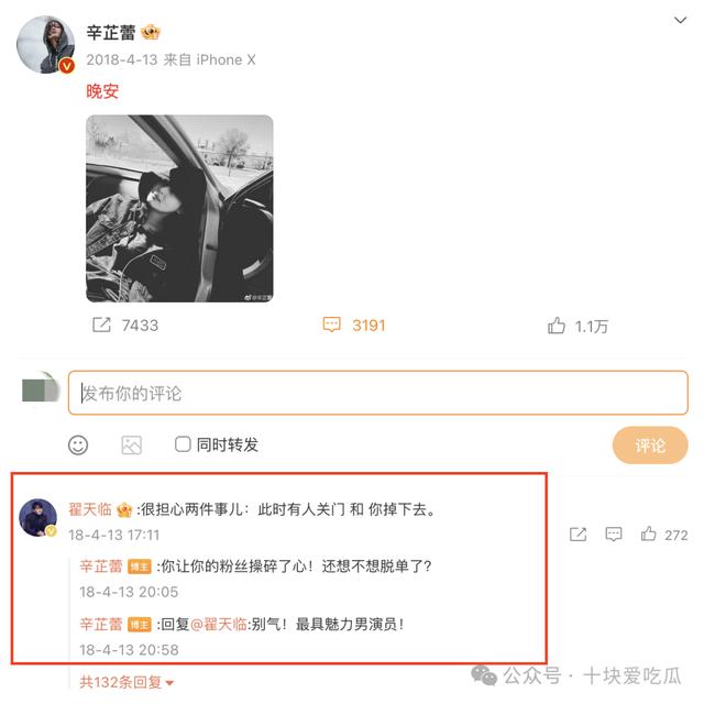 辛芷蕾在微博上发表了翟天临的评论。他们还在评论区来来回回。明眼人都能看出他们关系很好,真的有点暧昧。