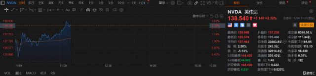 11 月 4 日,英伟达涨 总市值达到2.32% 3.39 超过苹果公司的亿美元,再次成为全球市值最高的公司。今年以来,英伟达股价累计上涨。 180%。