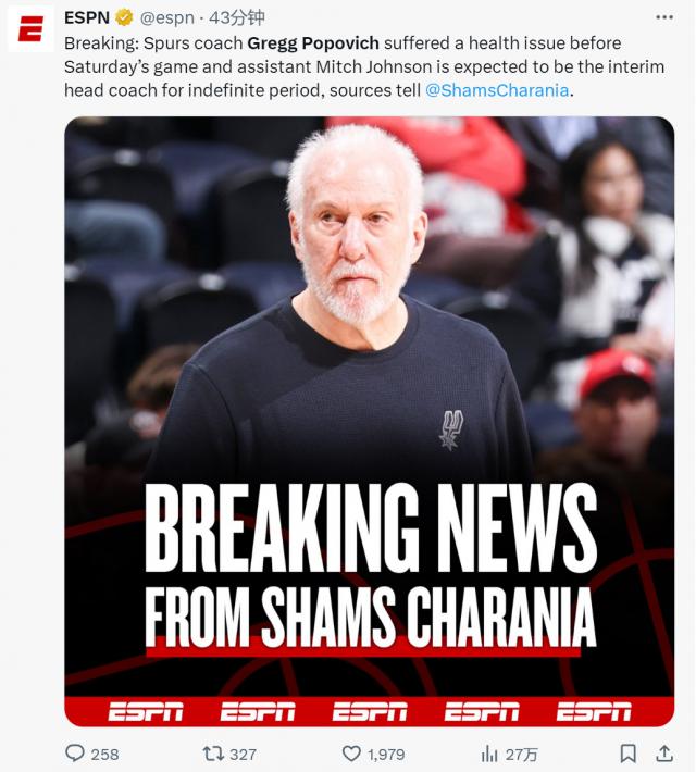 另外根据马刺队记 Tom Orsborn 跟进报道,波波维奇没什么大不了的,只是需要休息一下。波波维奇出生于波波维奇。 1949 年 1 月 28 日子,再过两个月就要了 76 岁了。2023 波波维奇,年夏 5 年 8000 与马刺续签万美元,现在新合同刚开始执行,他的健康就出了问题。