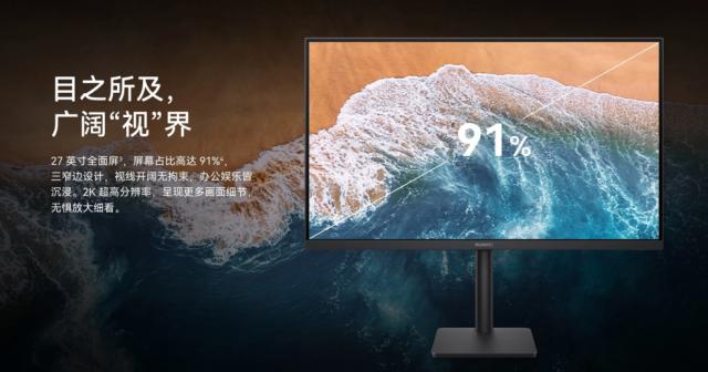 第一,新一代华为 MateView SE 显示器配置了一块 27 英寸的 2K 全高清晰度屏幕,组合 91% 超高屏幕比例和微窄边框设计,点亮屏幕的瞬间,仿佛整个世界都融入其中,带来身临其境的视觉享受。无论是处理文档、浏览网页还是观看视频,都可以享受无限的宽度和自由。