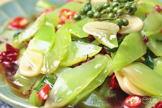 南方人喜欢把它切成细丝,用水焯一下,方便地投料调味,浇上响油,不出油, 5 一分钟,一盘绿色的凉拌生菜就上菜了!