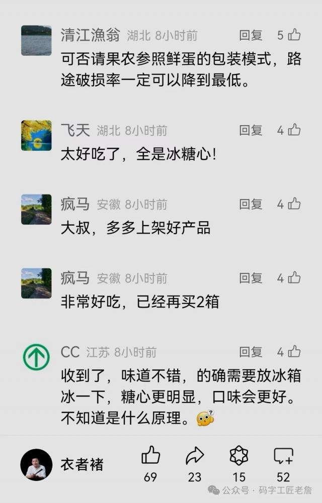另外,有读者收到后说水果不好吃,因为到目前为止只有一个,大部分反馈都说水果脆甜,味道很好,所以不知道问题出在哪里。和果农商量后,他们决定再送一盒。