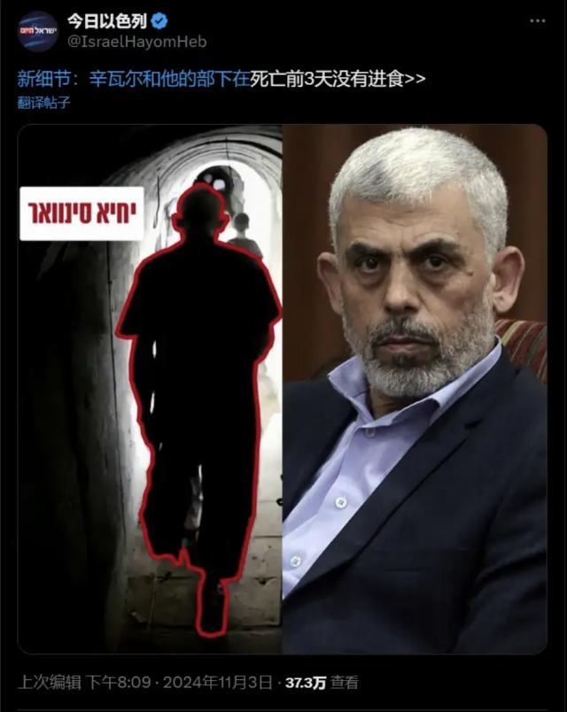 在以色列媒体发布的一条新闻中,提到辛瓦尔至少在死前就已经死了。 72 小时不吃东西,还附带了一大段关于他与以色列斗智斗勇的报道。 ...