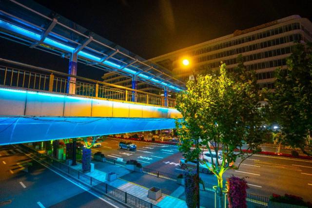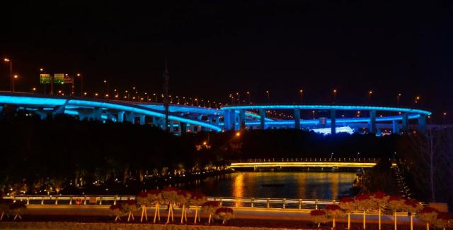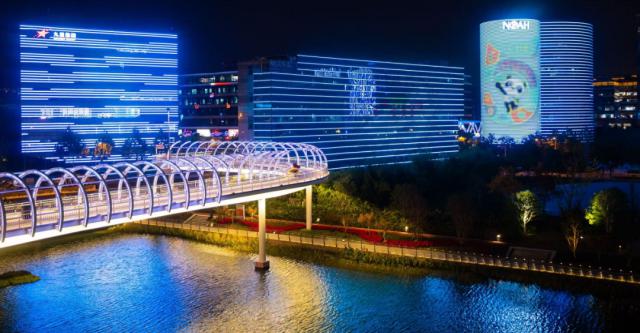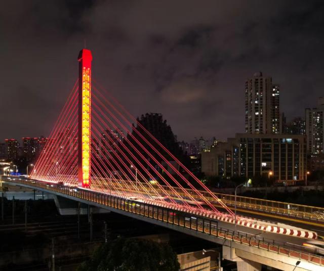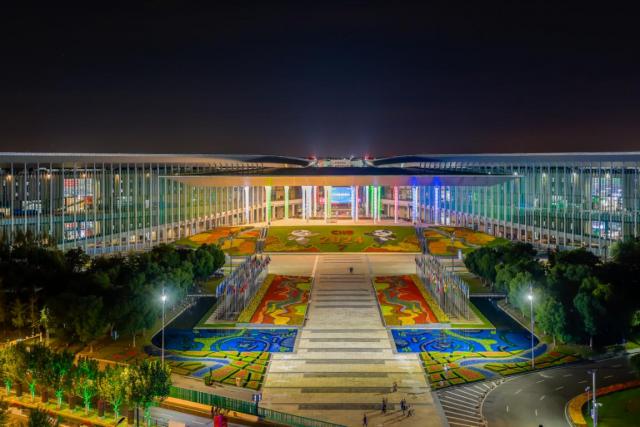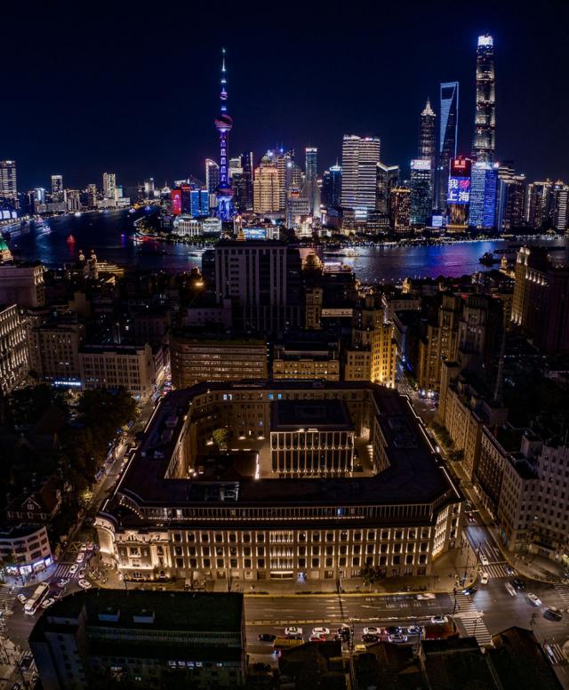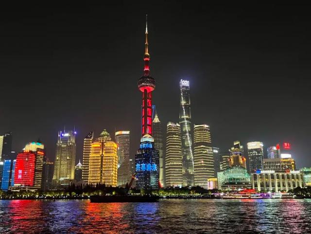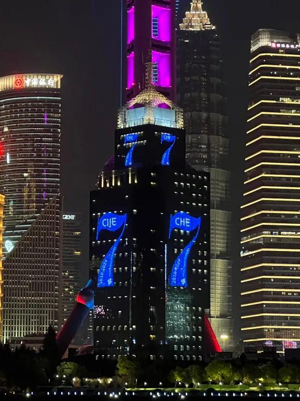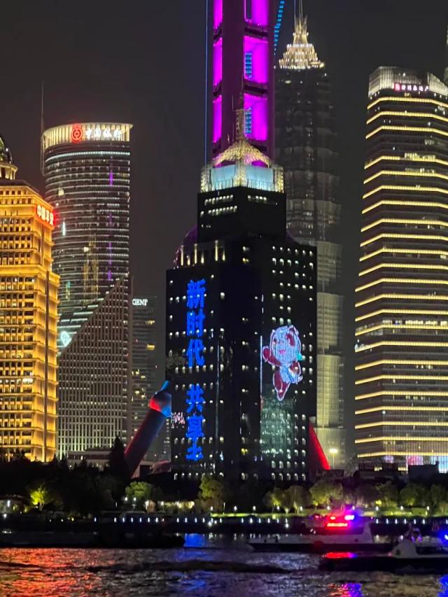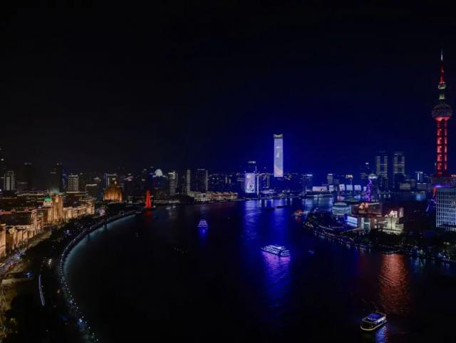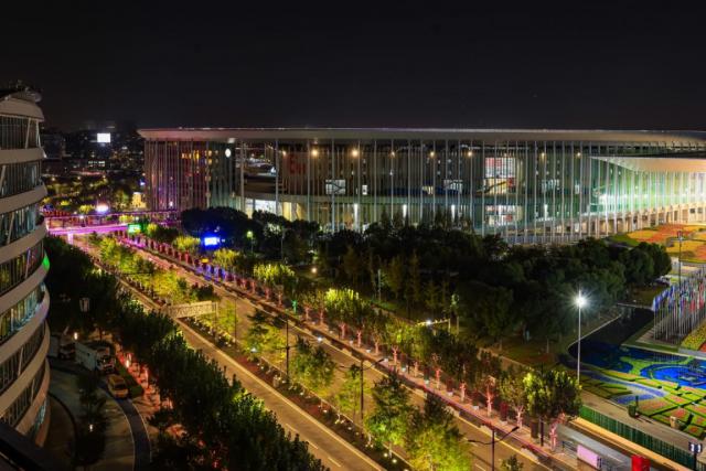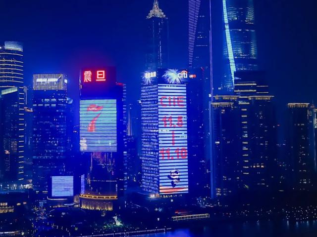 11 月 4 日至 11 月 10 日本,国家会展中心及周边地区、外滩、北外滩、小陆家嘴地区等核心地区,苏州河沿岸、市级商业区、“申”字形高架沿线等关键地区的景观照明开启了重大活动模式,利用彩光、动态光展现出色彩斑斓、色彩斑斓的夜景效果;第七届中国国际进口博览会主题宣传视频在黄浦江沿岸重要媒体立面播放。浦东新区港务大厦设有中国国际进口博览会临时照明装置;宣传道旗悬挂在南北高架、延安高架、嘉闵高架、沪渝高架道路沿线。咱们跟着镜头走,一起来看看吧↓↓↓