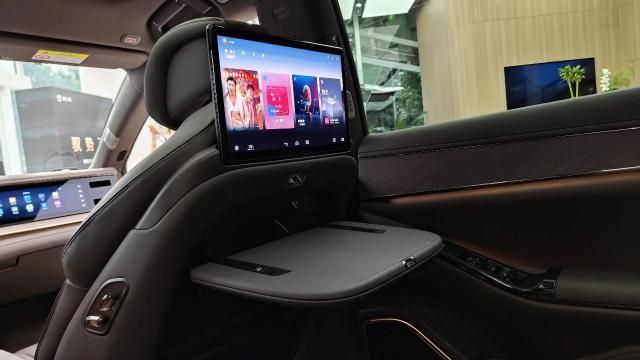 后排部分差别较大,腾势 Z9 配备了后排小桌板、后排娱乐屏、后排腿拖和座垫俯仰调节的零重力座椅,都是两个部分,更注重舒适性和豪华感。