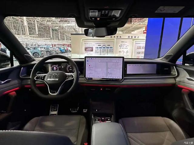 室内装饰方面,全新探岳 L 更加注重氛围的营造,新车增加了许多氛围灯,同时内饰配色更加轻快,符合年轻用户的定位。新车配置 15 英寸中央控制面板和 10.25 英尺液晶仪表,与途观 L PRO 车辆形成统一,车辆配置 8155 芯片,2K 支持中央控制屏幕 CarPlay 和 CarLife,新车引进了科大讯飞语音解决方案, / 副驾驶双音区识别响应,识别准确率超高 95%。与此同时,与海外车型相比,新车引进了副驾驶屏幕,为副驾驶乘客提供了更丰富的娱乐。
