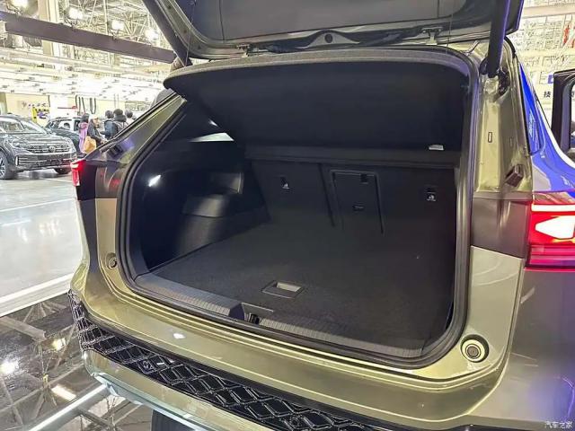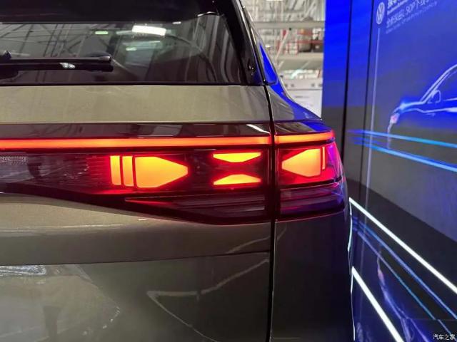 在车尾,新车还是选择了贯穿式尾灯,尾灯的款式也比较独特,点亮后也不一般。中心是大众。 LOGO 和探岳 L 英文标志,牌照框位于尾门上,尾门开口较大。后围与车前呼应,加入银色装饰,呈现跨界设计。
