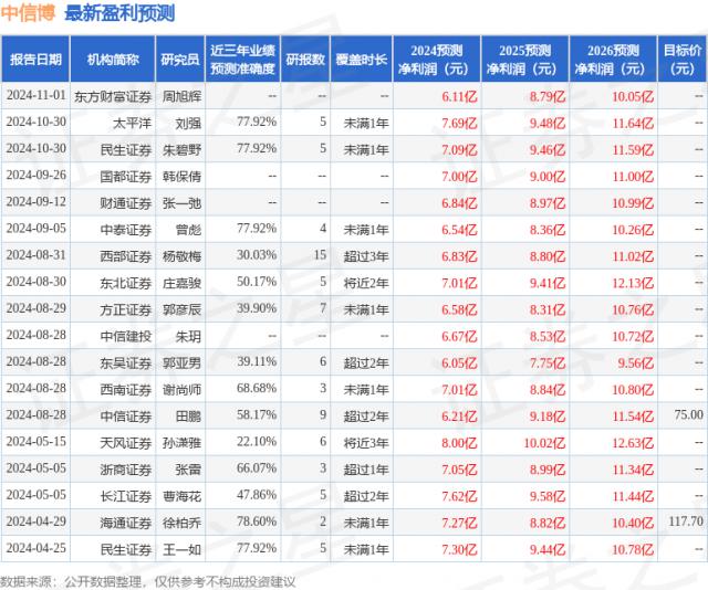 杨阳华龙证券有限公司 , 最近,许紫荆对中信博进行了研究,并发布了2024年的调查报告 第三季度报告评论报告:Q3 业绩持续高增,手订单充足”,本报告对中信博进行了加持评级,目前股价为 82.4 元。
