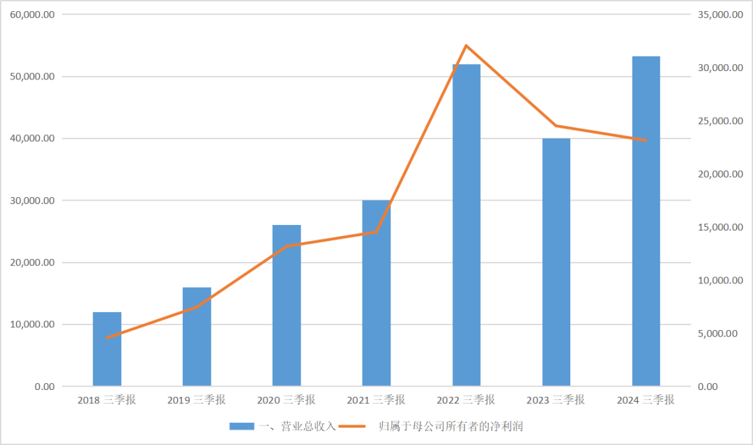 2024年前三季度,公司实现营业收入5.3亿元,同比增长33.3%,归母净利润2.3亿元,同比下降-5.6%,扣除非归母净利润2.1亿元,同比增长1.9%。