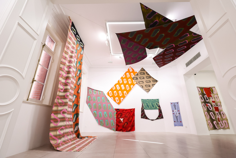 无题 Untitled n°1842023纺织品,窗帘拼接,丙烯Acrylicrylic on fabric and curtain 2966mounting x 151 图片由艺术家和TEMPLON画廊惠允、巴黎-布鲁塞尔-纽约- © Laurent Edeline
