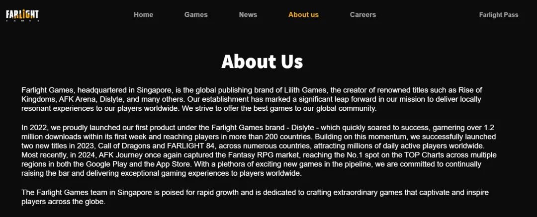 值得注意的是,品牌公布后,腾讯和米哈游都选择在新加坡成立海外团队,毗邻游客、化妆品隐形眼镜、IGG等老牌海外厂商。Farlight莉莉丝旗下 更明确地说,Games将新加坡定为「总部」。这也意味着国际游戏品牌的建立也可以作为国内厂商在海外进一步拓展团队,优化升级原有海外发行、内容本土化等业务的象征。