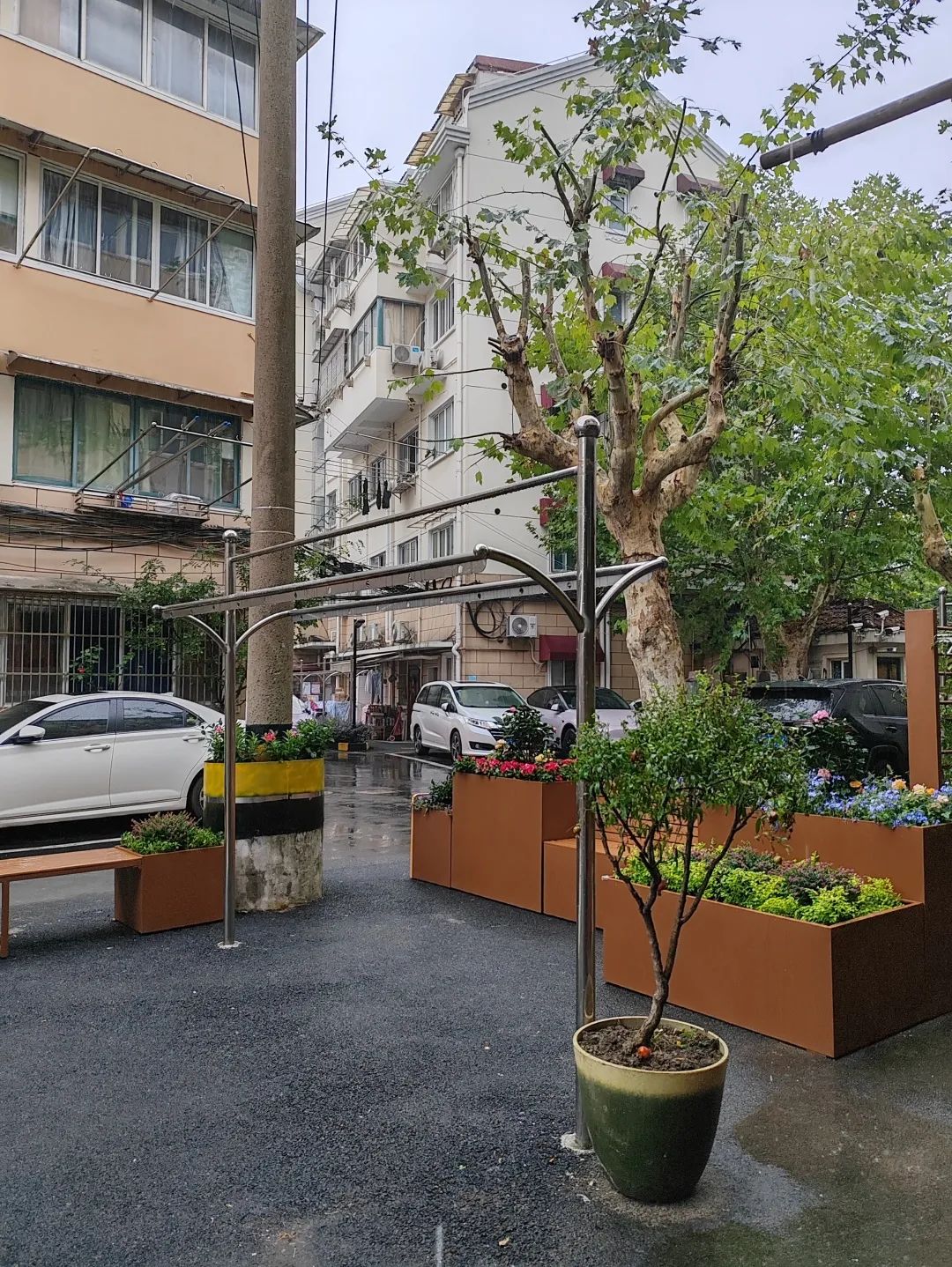 因此,居民区依托“自治全民星”项目,征求居民意见,开始改善区域,将居民的好意见和建议融入到设计方案中。例如,在花箱的角落安装防撞条,以防止儿童碰撞;在护栏内设置居民户外水槽,让整个空间看起来干净整洁;保留干衣功能,满足周围居民的日常需求。