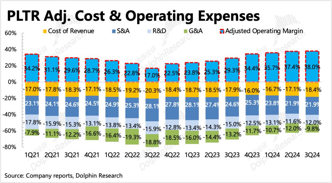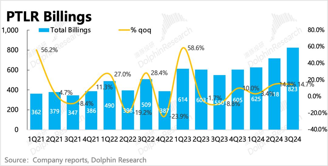 5. 费用控制周期已经过去:第三季度,由于去年Palantir数量较高,与上季度相比,营业利润同比增速进一步放缓,环比增速降至7%,利润率基本持平。