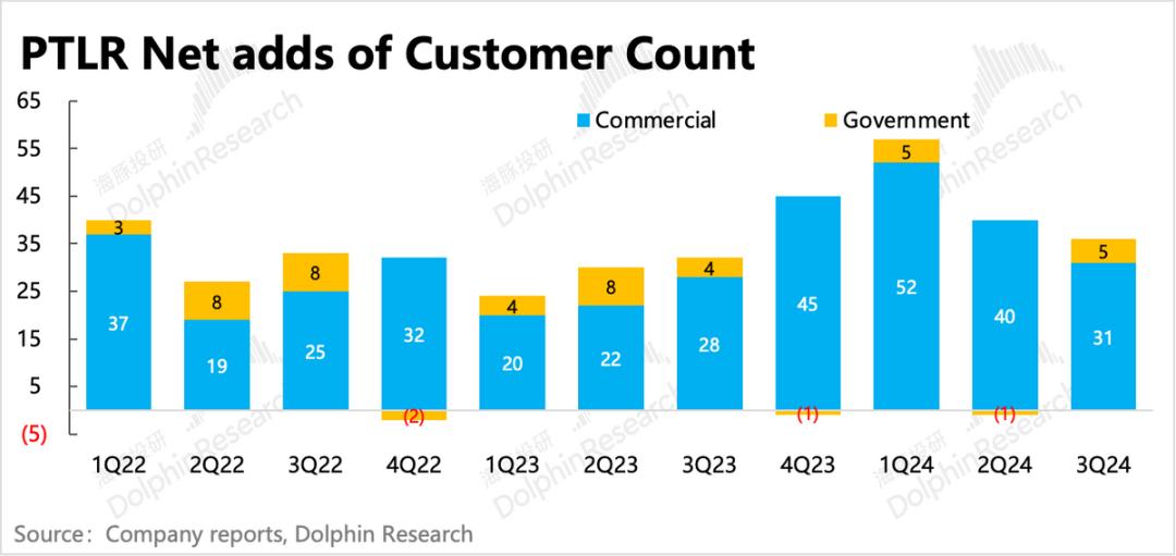 而且从最直观的客户数量来看,也偏中长期指标,第三季度环比增长36家,其中31家来自商业客户,5家来自政府部门。
