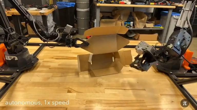 同时,他也表示,目前的算法并不稳定。就像 AI 有时候聊天机器人也会「崩溃」一样,这些「家务机器人」有时候会做出一些不可思议的行为:比如会把鸡蛋装满装不下的纸箱,强制关闭纸箱;有一次,机器人在装东西的时候,突然把盒子从桌子上扔了下来。