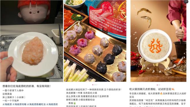 例如,海底捞捞派大粒虾滑,对虾滑的制作工艺十分重视。