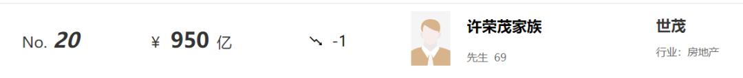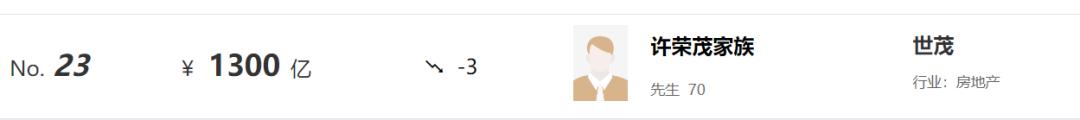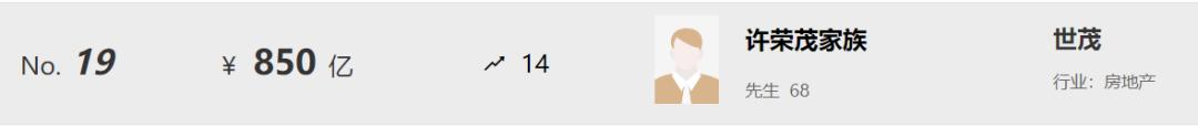 首次在“胡润房地产富豪榜”上,富豪是世茂集团的许荣茂。