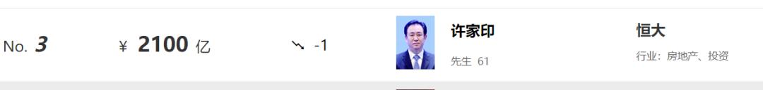2019年,房地产富豪许家印排名第三;2020年,房地产富豪仍是许家印,排名下降至第五。