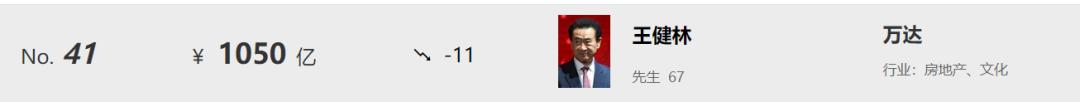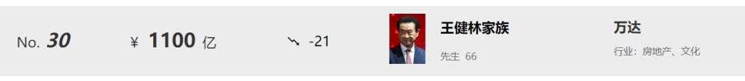 王健林的个人财富随着万达方式的运行而增加到350。 亿元,进入“百富榜”前十。