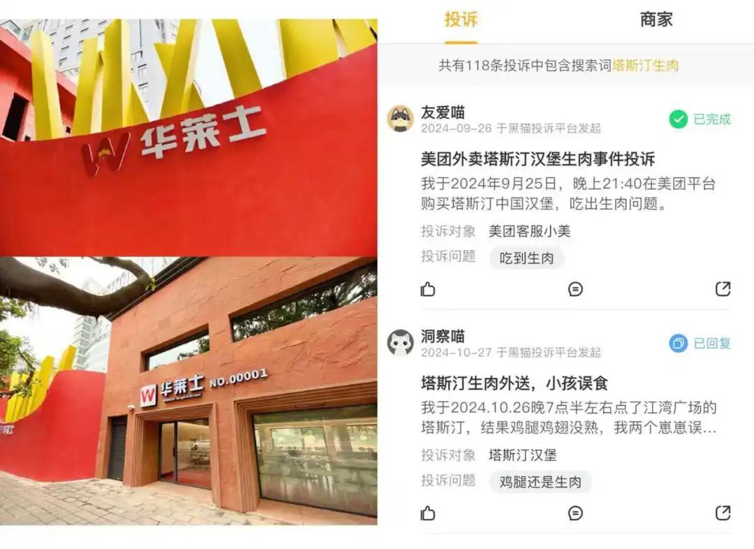 角色对调,中国汉堡塔斯汀曾经以质价比走红,现在却陷入了“生肉之门”。在黑猫投诉平台上,有118条关于塔斯汀生肉的投诉,说明这根本不是偶然事件,质量控制真的有问题。