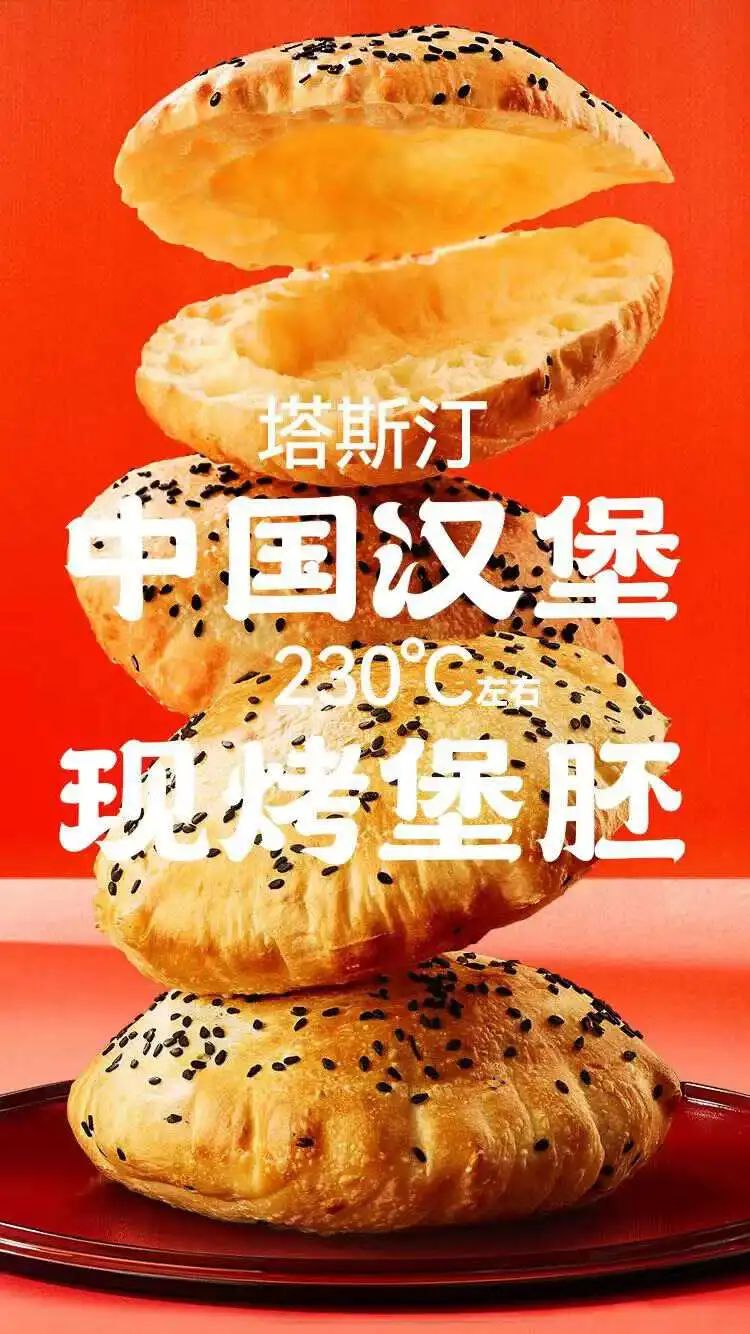 所以聪明的塔斯汀把汉堡和中国汉堡结合起来,把面包换成了中国烤饼,原来是手工制作的烤堡胚,麦香 咀嚼,狠狠地抓住顾客。