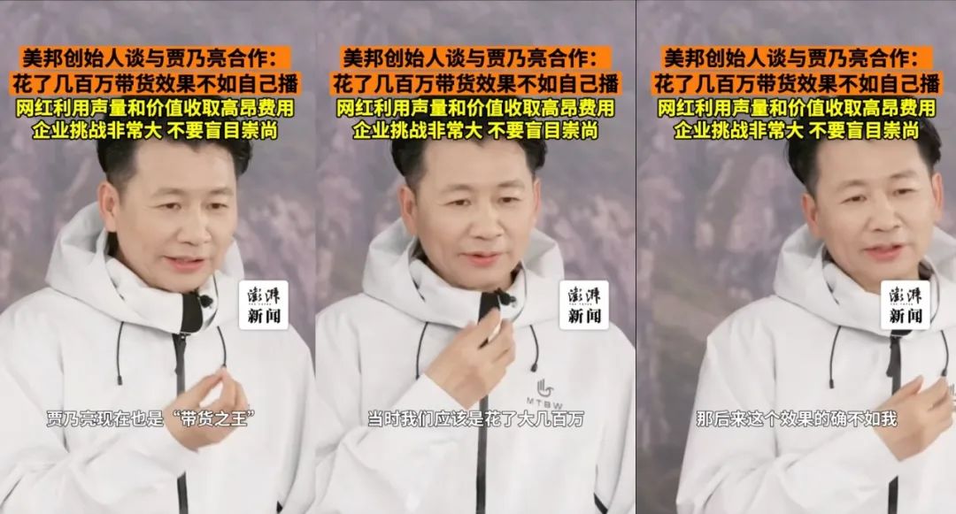 美邦创始人周成建谈贾乃亮带货,来源:澎湃新闻