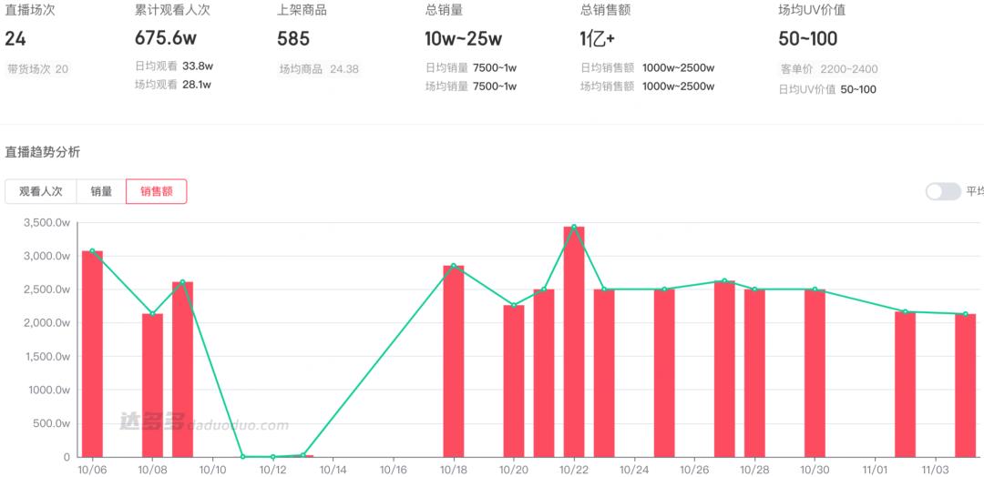 与东方选拔完全分离的和辉同行继续努力,他们的第一个双11也表现不错。根据达多多的数据,10月份有45场与辉同行的直播,GMV高达10亿。 ,成为抖音直播电商的绝对领头羊。然而,董宇辉的言行影响了与辉同行的直播间表现。双11之前经常发生的滑铁卢事件,也让外界对此提出了很多质疑。