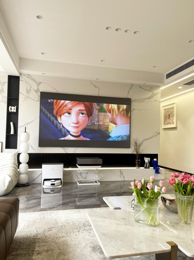 在家庭美学方面,激光电视的表现也值得称赞。星光 S1Pro 该系列独特的可折叠屏幕设计,巧妙地解决了传统大屏幕电视入户难题。100 英尺大屏幕的包装体积仅相当于 1.6 米高,通过电梯轻松进入高层建筑,使安装过程不再因大尺寸而繁琐。搭载的菲涅尔抗光屏也让这款激光电视在阳光充足的白天或夜间照明环境中保持了出色的清晰度,进一步提升了视觉体验。不仅如此,激光电视的屏幕支持靠墙安装,大大提高了家居的整洁度和空间利用率,摒弃了传统电视的厚重感。安装后,激光电视就像一件艺术品,与家居装饰相辅相成,营造出大气、优雅的客厅氛围。这一美学突破,无疑给客厅带来了时尚感和品质感,使其更加适应现代家居设计的潮流。